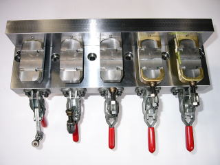 については、ライター部品の加工用、検査用ジグを長年製作してきたノウハウがあります。小物の穴あけ用からマシニングセンタ用、多数個取りジグまで製作いたします。